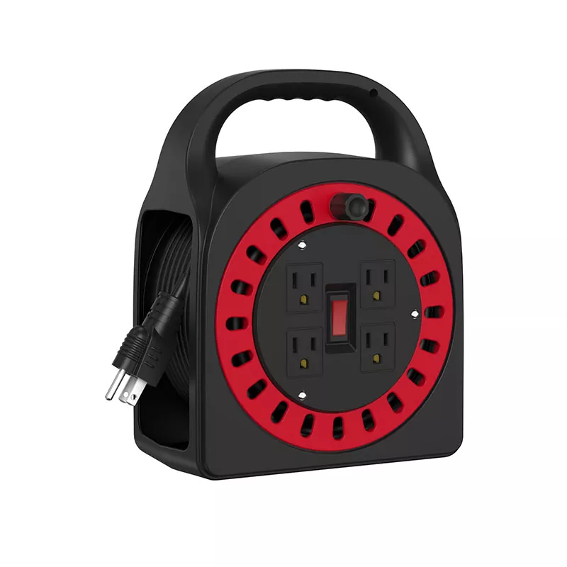 மல்டிஃபங்க்ஸ்னல் 4 அவுட்லெட்டுகள் பிளாஸ்டிக் கார்ட் ரீல் 50 அடி படுக்கையறை, வாழ்க்கை அறை மற்றும் சமையலறை உள்ளிட்ட காட்சிகளில் பயன்படுத்தப்படலாம். படத்தில் பிரத்தியேக லோகோவைத் தனிப்பயனாக்கலாம்.